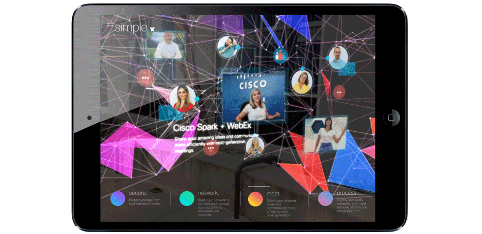 “The Cisco ‘Simple’ AR Experience” was a public installation augmented reality (AR) exhibit for the Ingram Micro ONE trade show in 2018. It gave attendees a chance to envision and experience various Cisco products that live in the cloud. Developed using Vuforia’s ground plane technology to allow AR experiences on iOS without any pattern marker recognition necessary.